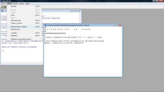 quisermos o total de caras nos lançamentos, podemos usar o comando sum(moeda). Este comando soma todas as