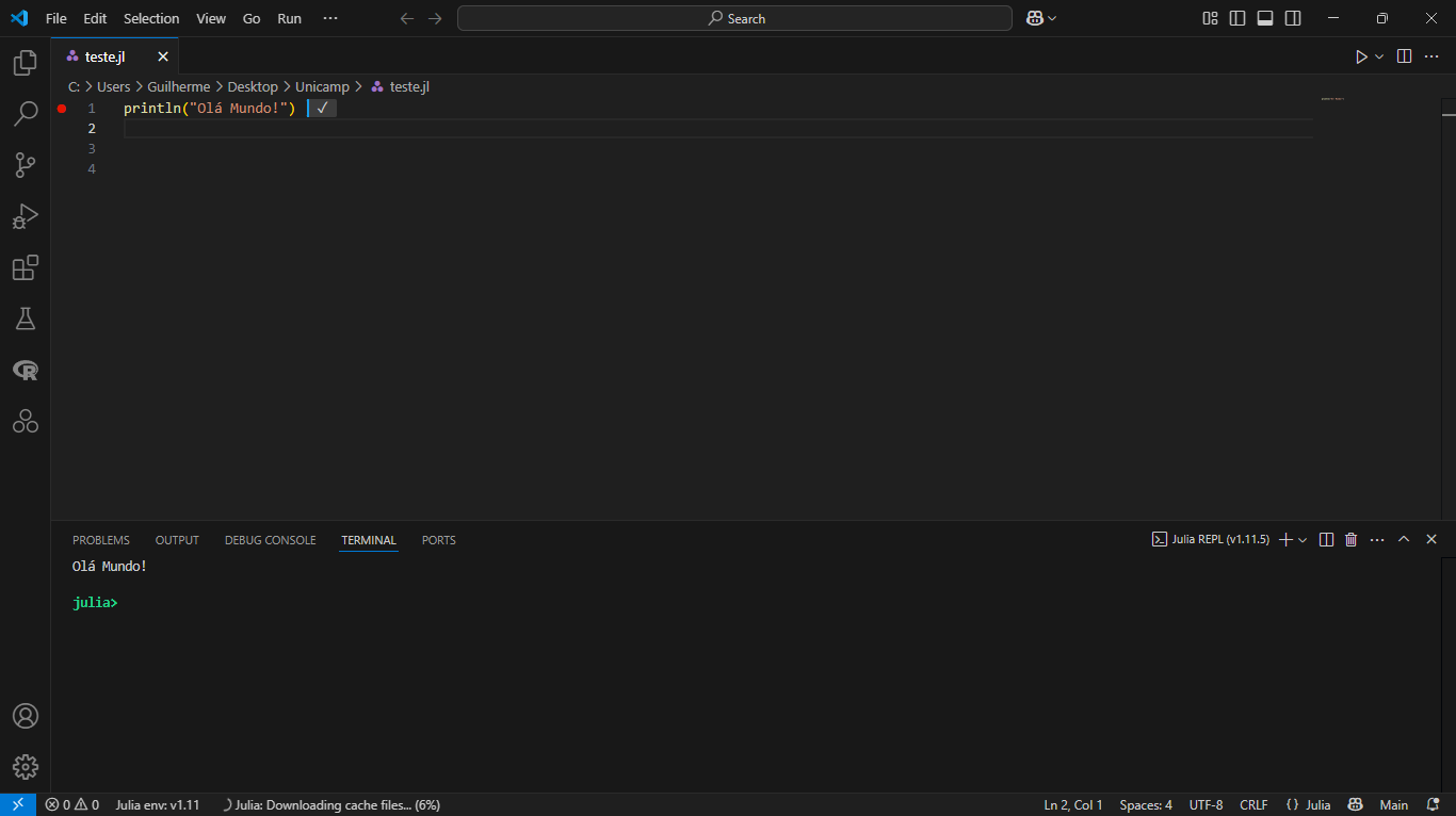Pronto! Agora você já pode começar a programar e desenvolver seus projetos em Julia com o VS Code!